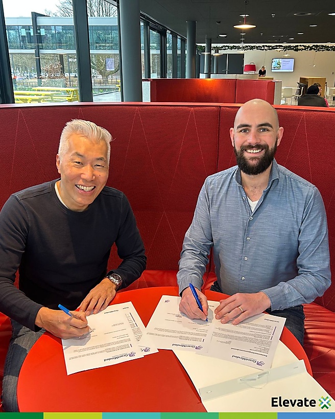 Deze week vond het officiële tekenmoment plaats met Tom van Tilborg en Gido Akse namens GrantMinded en programmamanager Jonie Oostveen namens Elevate-X.
