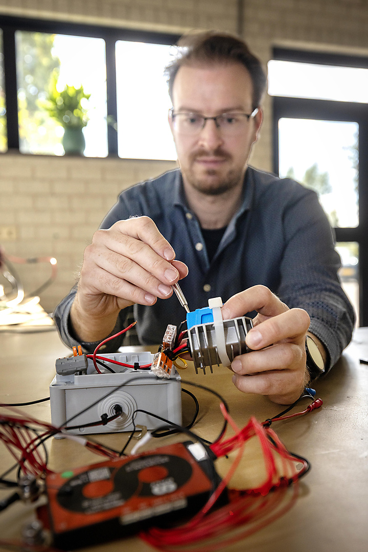 Met een beurs vanuit de Faculty of Impact – een programma dat wetenschappers helpt hun onderzoek te vertalen naar ondernemerschap – volgde een periode van zoeken en experimenteren. “Ik heb met veel potentiële klanten gesproken en onderzocht waar hun echte problemen liggen”, vertelt Tijmen. “Zie het als een uitgebreid marktonderzoek: in plaats van vast te houden aan de technologie ben ik uitgegaan van de praktijkvragen. Zo ontdekte ik dat er veel partijen zijn die kampen met off-grid energieproblemen. Denk aan situaties waar een klein, constant vermogen nodig is, maar waar geen vaste energievoorziening is. Het alternatief, zoals kabels trekken of het net uitbreiden, is vaak kostbaar, omslachtig of onmogelijk vanwege vergunningen of volle netten. Voor de infrastructuursector is een off-grid oplossing dus ideaal. Bijvoorbeeld voor parkeerterreinen die camerabeveiliging nodig hebben en langs kleinere wegen waar ANPR-camera’s of flitspalen moeten komen.”